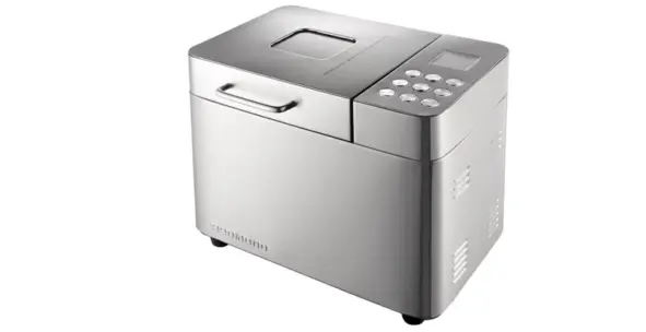 Эта модель позволяет выбирать цвет корки, поддерживает температуру, регулирует вес, имеет два тестомешателя для качественного замешивания и съемную крышку для легкой чистки. Таймер можно настроить до 15 часов, задержав начало выпечки. Недостаток модели заключается в пластиковом корпусе.