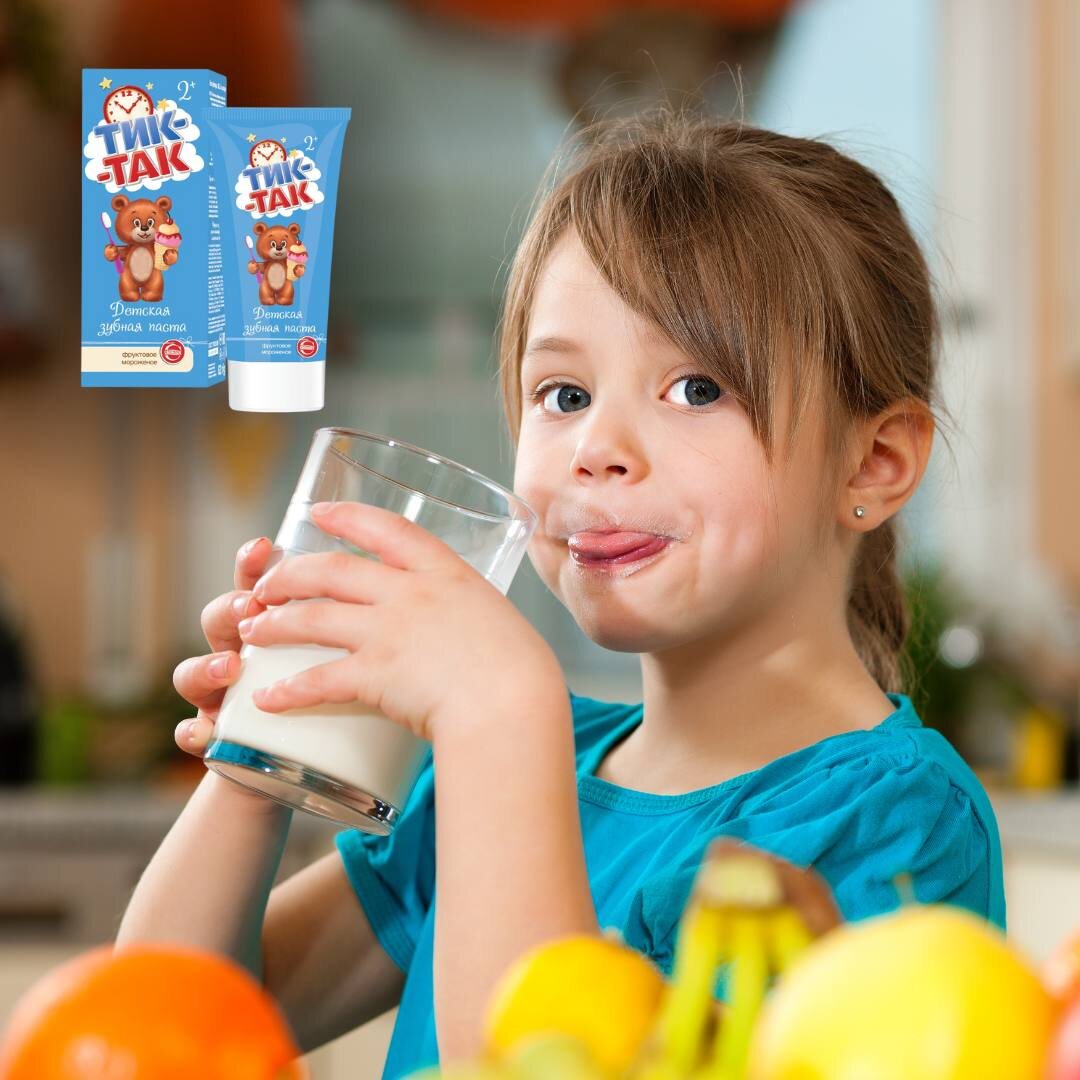 Здоровье зубов во многом зависит от правильного питания, которое укрепляет эмаль и предотвращает развитие кариеса. Для формирования крепких и здоровых зубов обязательно включите в рацион ребенка следующие продукты: - Молоко, творог, йогурты — основные источники кальция, который укрепляет зубную эмаль. - Фосфор, содержащийся в молочных продуктах, помогает восстанавливать зубную ткань. - Яблоки, морковь, огурцы — это натуральные "зубные щетки", которые очищают зубы от налета, стимулируют десны и выработку слюны, защищающей от бактерий. - Богаты минералами, такими как магний и кальций, укрепляющими зубы. - Его антисептические свойства помогают бороться с бактериями в полости рта (чай для ребенка должен быть без сахара). - Обычная вода помогает смывать остатки пищи и защищать зубы от кариеса. Питание — это важно, но и правильный уход за зубами играет ключевую роль. Детская зубная паста ТИК-ТАК с ароматом фруктового мороженого предназначена для малышей с двух лет и идеально дополняет забо