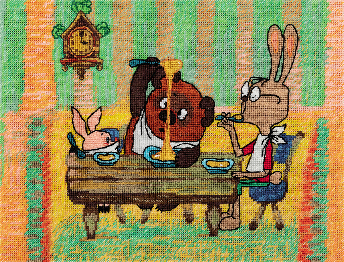 Вышивайте крестиком на канве любимых героев: «Винни Пух и Пятачок» , «Подарок для Иа», «Винни Пух» – и целый эпизод «В гостях и Кролика». А еще подвесные игрушки-магниты, где собрались все-все-все, кроме Кролика. Куда-то он делся…