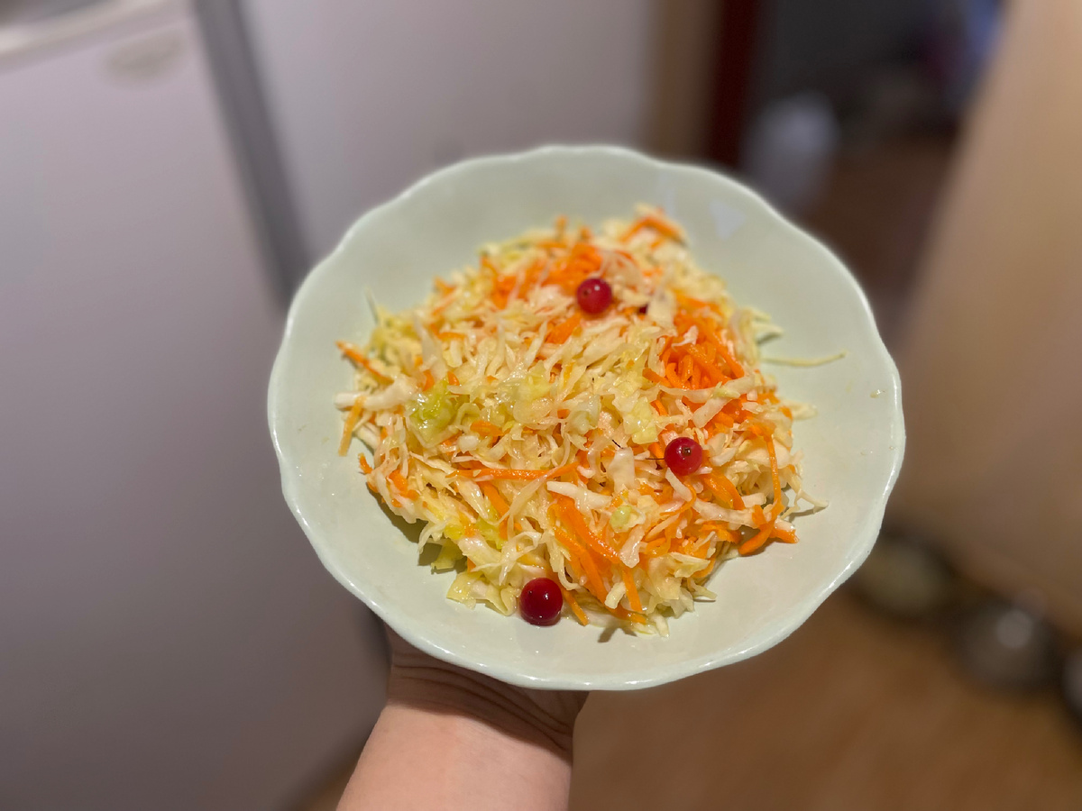 Сегодня поделюсь с вами отличным, быстрым очень простым и вкусным рецептом маринованной капусты. У меня с удовольствием ее едят даже дети. Нам понадобится: капуста морковь чеснок вода соль сахар уксус 9% растительное масло. Все ингредиенты берём исходя из 1 килограмма капусты. (капусту и морковь я шинкую на специальной терке) Готовим маринад: (добавляю для красоты клюкву) Я обычно мариную капусту на ночь, а наследующий день она уже готова к употреблению. Хранить в холодильнике не более 1,5-2 недель.