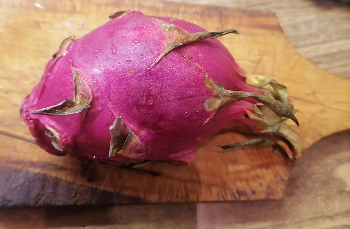 Питахайя, также известная как драконий фрукт, имеет богатый питательный состав. Это тропический плод с уникальным внешним видом, хрустящей текстурой и сладким вкусом. Он получил своё название от огнедышащего дракона. Внешне плод имеет вид ярко-розовой или жёлтой луковицы с колючими зелёными листьями, вырывающимися вокруг него, словно пламя. Внутри находится белая мякоть, усеянная чёрными семенами. Драконий фрукт обладает сладким вкусом, который некоторые описывают как нечто среднее между киви, грушей и арбузом. Семена имеют ореховый вкус. Драконий фрукт богат витамином С (9% рекомендуемой суточной нормы), магнием (8% дневной нормы) и фолиевой кислотой (1% суточной нормы). Ps: Решили попробовать этот интересный фрукт. Купили в пятёрочке 49р за 100г. У нас вышло на 198р. Честно сказать фрукт на любителя. Нам попался не сладкий, показался каким то пустым.