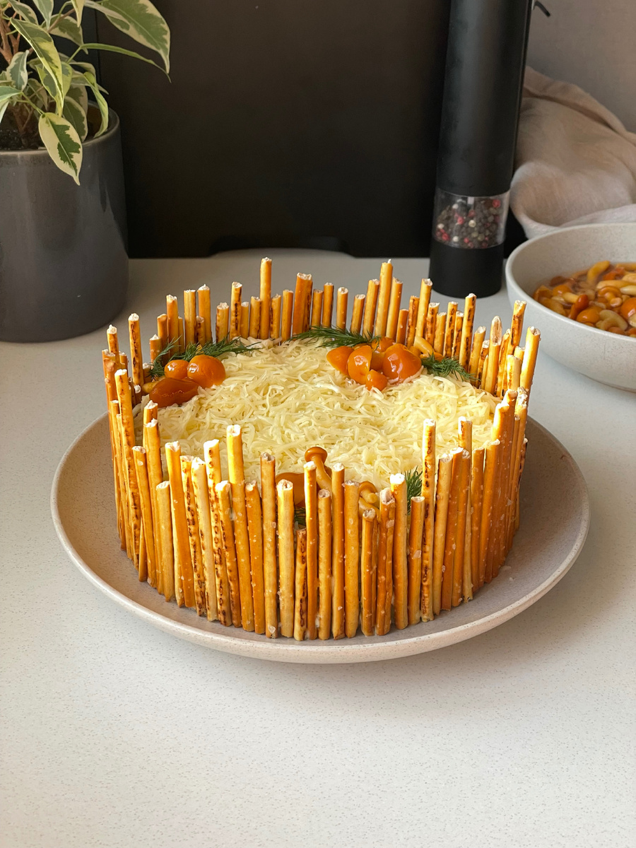 Ну во-первых, спасибо, что вчера меня так тепло встретили! Неожиданно и приятно ♥️ Во-вторых, вдогонку ко вчерашнему ловите еще один рецепт слоеного салата! Мало того, что он безумно вкусный сам по себе, так ещё и подача бесподобная! Простая, но эффектная! Готовить легко и быстро, всё на видео проговорила, но ниже и текстом пропишу) Ингредиенты: Для украшения: Яйца отварить и натереть, шампиньоны с луком обжарить. Куриную грудку нарезать кубиком. Сыр натереть на мелкой терке. Для соуса смешать сметану, майонез, укроп и чеснок. Выкладывать в кольцо слоями: 1 слой: вареные яйца + соус 2 слой: жареные грибы + соус 3 слой: копченая курица + соус 4 слой: сыр Из соломки выложить заборчик вокруг салата. Сверху украсить опятами и укропом. Приятного аппетита!♥️