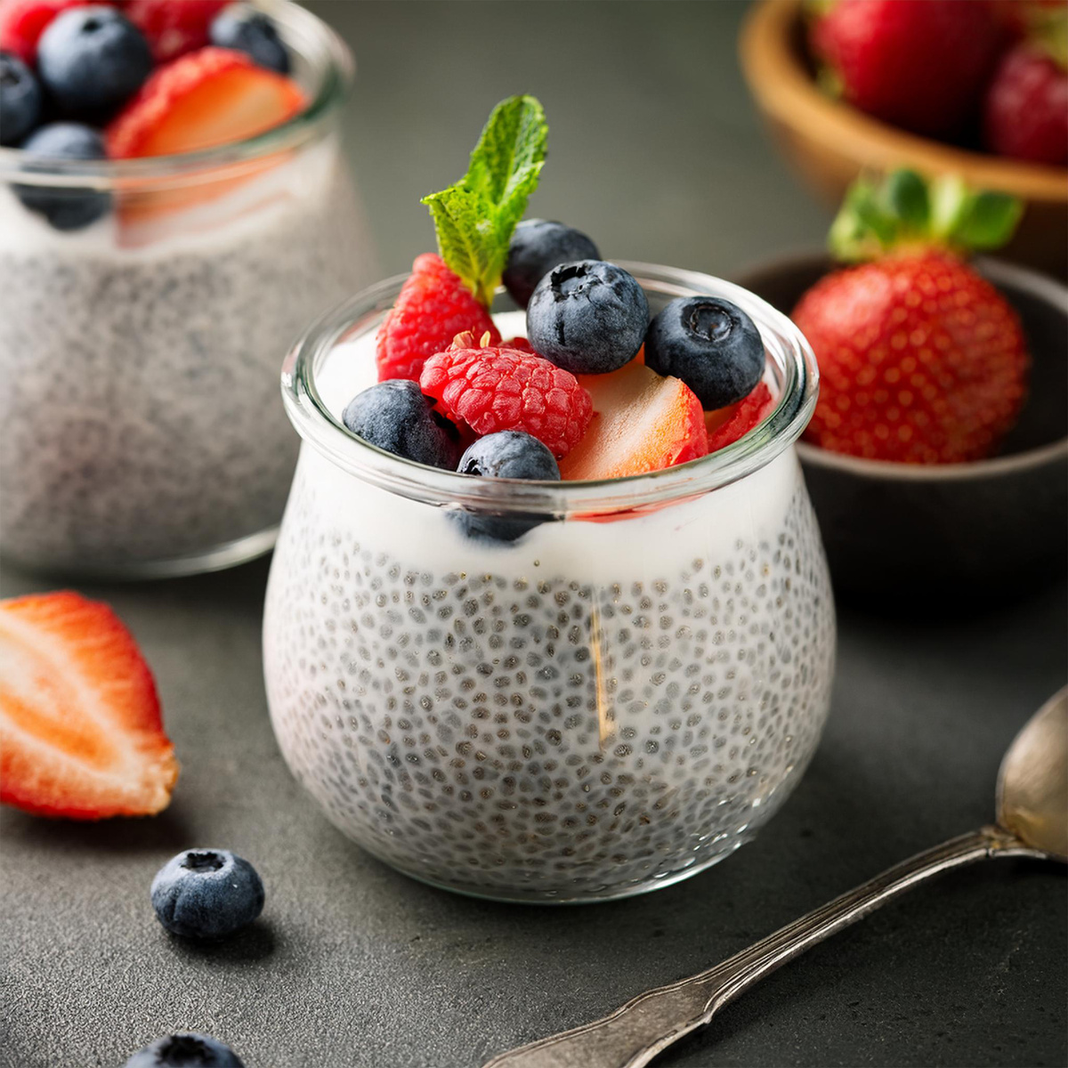 Пудинг. Чиа-пудинг с кокосовым молоком и ягодами: сладкий полдник без вреда