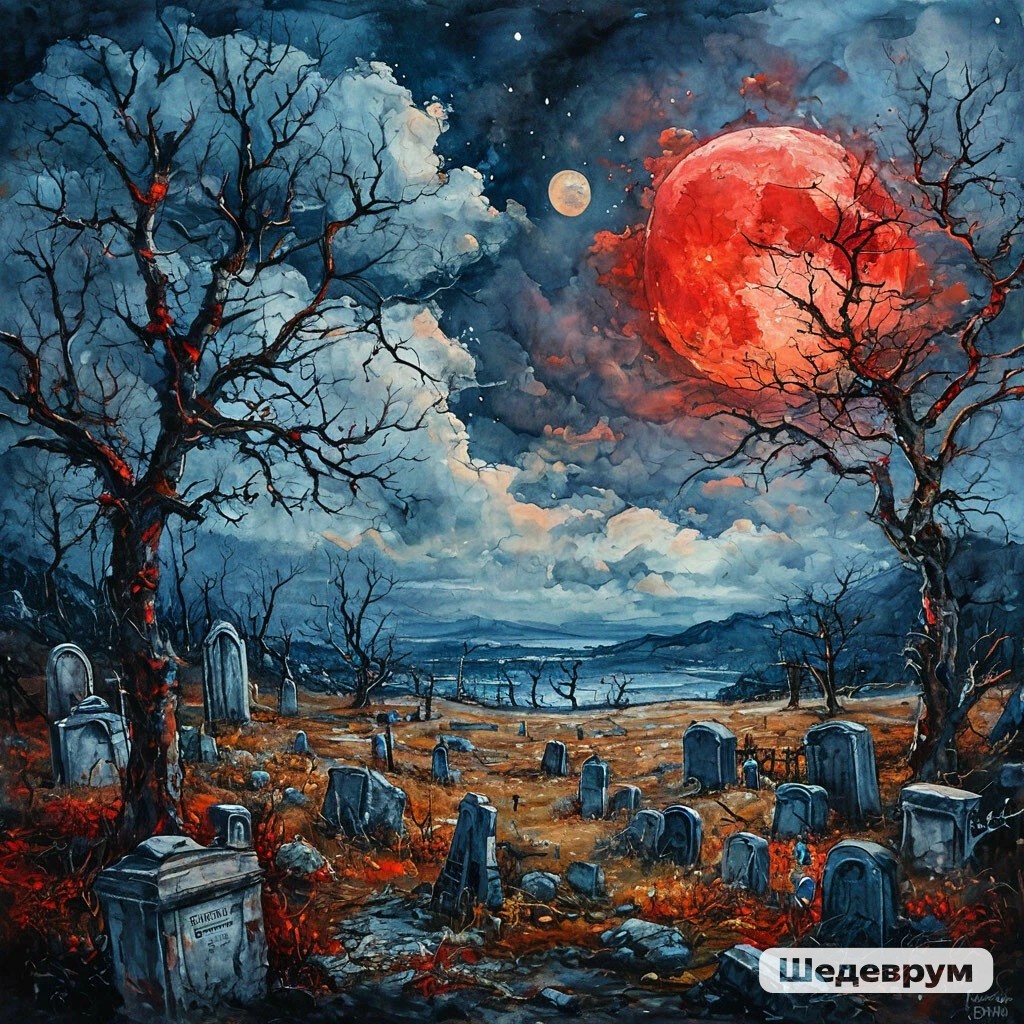 Холодный свет звёзд падает на угрюмые могильные плиты сотворяя в паутине трещин и зелени мха причудливую игру теней. Полная луна вышла из-за кружева красновато чёрных облаков.