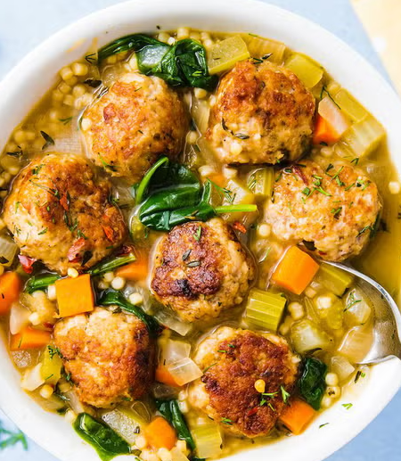 Если вы ищете идеальное блюдо для уютного вечера, то итальянский свадебный суп определенно заслуживает внимания. Этот насыщенный и ароматный суп сочетает в себе фрикадельки из курицы, мелкие макароны и множество свежих овощей, создавая нечто большее, чем просто традиционный куриный суп с лапшой. В холодные дни он становится настоящим спасением! Хотя в некоторых вариантах рецептов используется "Орзо", я настоятельно рекомендую попробовать с российскими макаронами твердых сортов, такой формы как «перья» или «спираль». Эти небольшие по форме макароны имеют компактный размер и после приготовления впитывают меньше жидкости, что позволяет вам наслаждаться остатками без страха, что они превратятся в кашу. Что касается названия, «итальянский свадебный суп» — это результат неправильного перевода итальянской фразы «Minestra Maritata», что в буквальном смысле означает «суп для молодожёнов». В Италии это название не связано со свадьбами; оно символизирует «брак» вкусов, когда мясо и зелень готовя