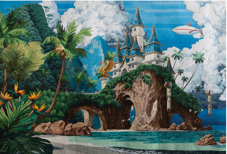 Добрый день, дорогие друзья и любители лоскутного шитья. В продолжение своего рассказа о новинках квилтинга, которые были отмечены судьями и зрителями на фестивале 2024-го года в Хьюстоне хочу вынести на обсуждение работу Кестрель Мишо под названием "Прибытие". Первая премия за мастерство в области современного искусства - 5 000$. Я уверена, что многие из вас точно так же, как и я, озадачились, увидев эту фотографию, и подумали, что это какая-то ошибка. Наверное, это картина или какая-то иллюстрация? В принципе, мы с вами не так далеки от истины. Однако, для того, чтобы разобраться с этим, нужно узнать историю создания этого квилта. Автор этой работы, Кестрель Мишо - дама творческая и потому немного странная. С самого детства в ее голове живут сказочные персонажи, и, поскольку ее мама всячески старательно поддерживала творческое начало в своих детях, то к настоящему времени эти вымышленные герои уже построили огромный нереальный мир. Именно о нем Кестрель рассказывает, создавая свои н