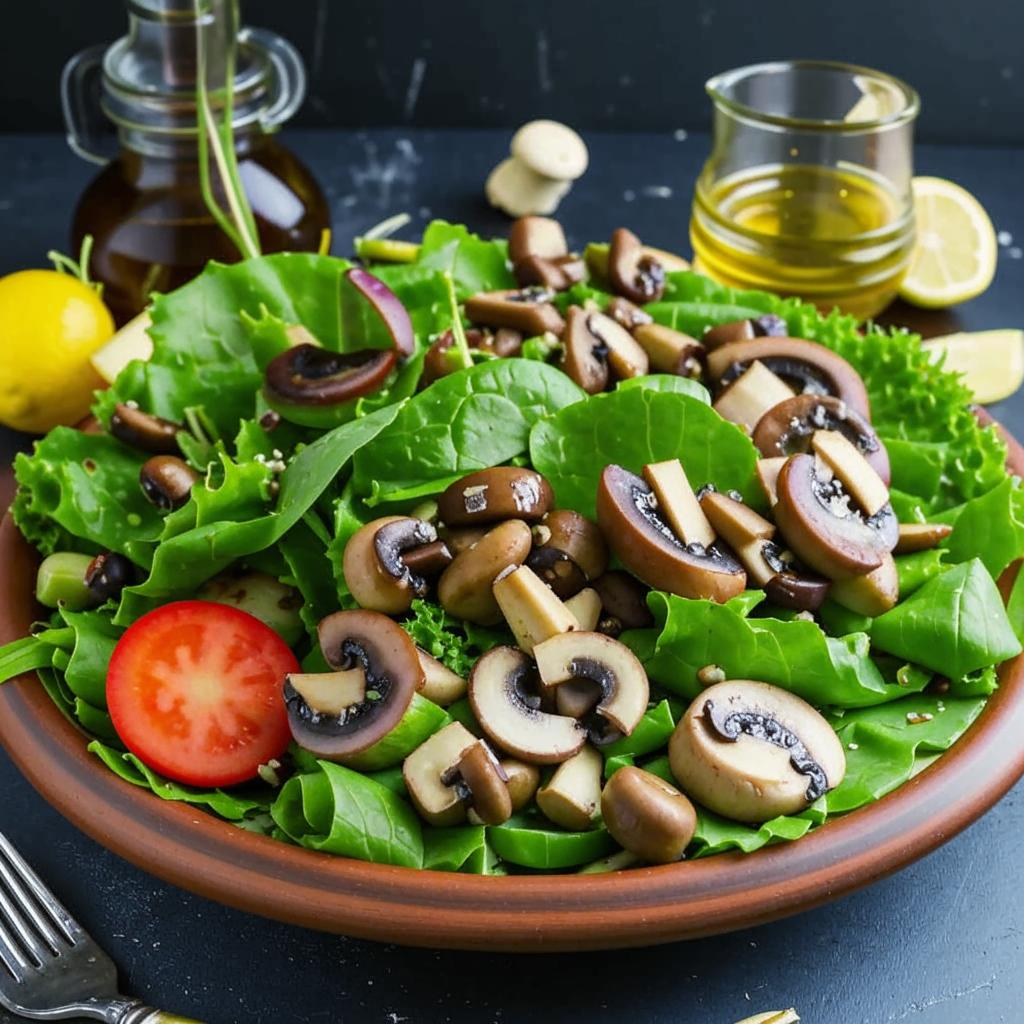 6. Выложите в салатник листья салата, сверху выложите грибы с курицей.