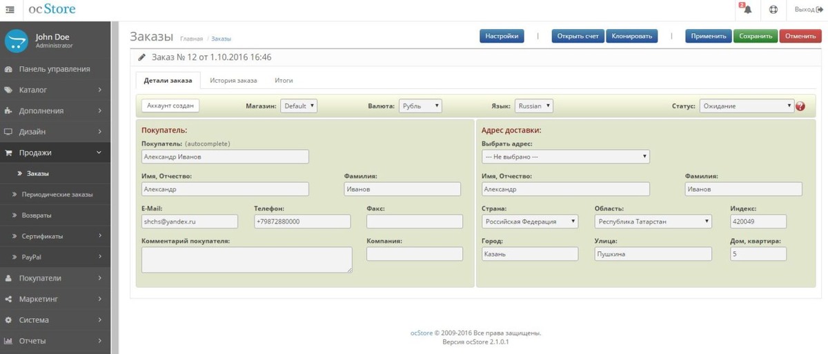 Удобный редактор заказа OrderPro для Opencart