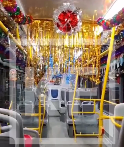 В преддверии Нового года транспорт Казани преобразился. Работники транспортных предприятий украсили салоны автобусов и троллейбусов, создав праздничную атмосферу для пассажиров. IMG_3957-_1_ Как видно на видео, предоставленном KazanFirst, салоны украшены ярким новогодним дождиком, красочными постерами с поздравлениями, а окна — разноцветными гирляндами. IMG_3958-_1_ Даже поручни не остались без внимания: их украсили блестящей мишурой и новогодними шарами. Очевидцы сообщают, что такой подход создаёт приятное предпраздничное настроение для всех казанцев, пользующихся общественным транспортом. Ранее KazanFirst писал, что Казань накроет мощным снегопадом.