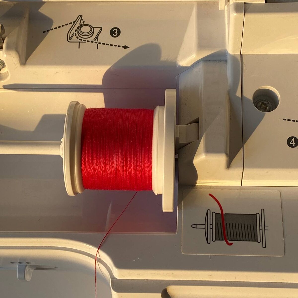Одна из возможных причин обрыва нити кроется в неверной заправке машины, а именно в неправильной установке катушки на катушкодержатель.