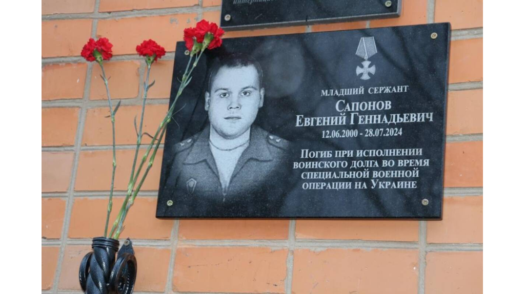 В брянском селе Елионка открыли мемориальную доску участнику СВО Евгению Сапонову