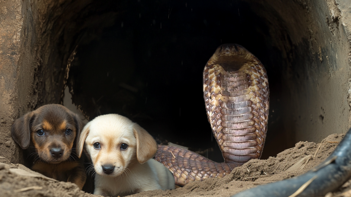 Королевская кобра закрывала собой щенков в колодце: люди думали, что она спасала их, но они ошиблись