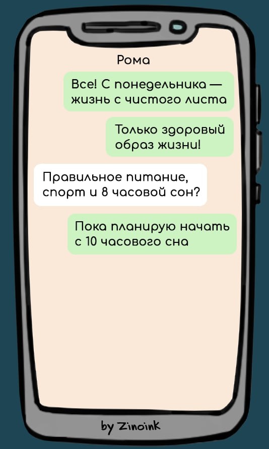 Год подходит к концу, и как обычно многие захотят начать новый – с чистого листа! Не торопитесь с этим, а то только начнете, а там подъедут фотки с корпоратива!) Поэтому лучше подумаем об этом с февраля. А пока – почитаем статью на тему лучшей новой жизни! Я собрал 7 смешных переписок, в которых люди пытаются круто поменять жизнь. Уверен, они тебе понравятся. Приятного чтения и отличного настроения! Говорят, начать жизнь с чистого листа совсем не сложно. Главное – вовремя менять рулон). В тему наших возможностей – следующая переписка. Психологи утверждают, что нельзя резко браться за что-то новое. Тогда ты быстро устанешь, потеряешь интерес и мотивацию. Берите пример с героя следующей переписки. Он трезво оценивает свои возможности. Если не можете наладить жизнь, не обязательно читать умные книжки, обращаться к психологу и стараться выйти из зоны комфорта. Можно наоборот – залезть в нее поглуюже, в пледике и с чаечком). Всем известно, что вредные привычки портят качество жизни. Но так