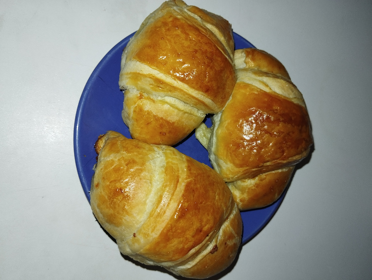 Обязательно помазать сырым яйцом всё круассаны. Отправляем в духовку на 30 минут на 200 градусов. И получается быстрый, вкусный завтрак!