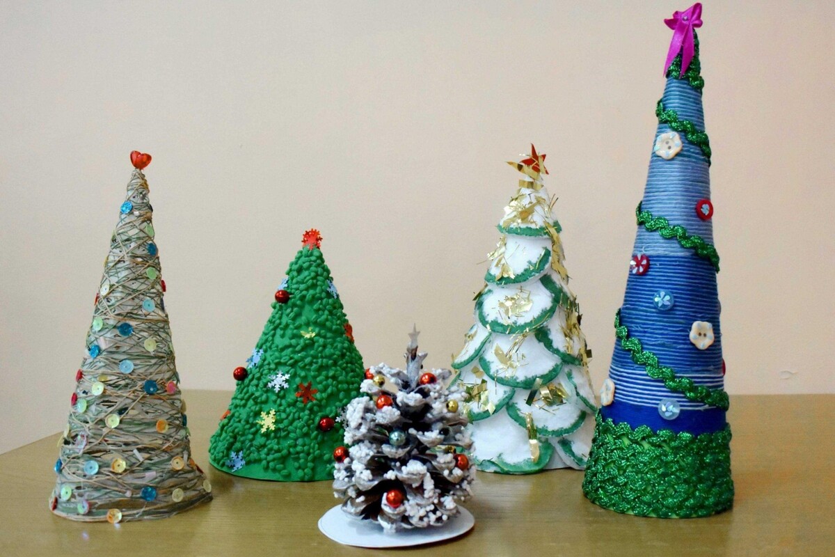 Чтобы хвойной красавице не было одиноко в интерьере, можно дополнить окружающее пространство самодельными елками из подручных материалов. Такие поделки несложно смастерить самим или вместе с детьми, чтобы разбавить предпраздничную суету интересным занятием. Также можно приобрести и готовые елки, однако самостоятельно сделанный декор принесет больше уюта и оригинальности в ваше помещение Ёлочка сделанная своими руками станет отличным подарком для ваших родных и близких .Такие яркие альтернативы как раз в тренде . Такие оригинальные ёлочки выполняются из бумаги, шишек, ватных дисков, бутылок и ниток. Всё зависит от вашей обширной фантазии . Ёлочки получаются интересными, индивидуальными и стильными . Особенно такие ёлочки нравятся детишкам . Детям наверняка очень понравится провести предновогоднее время за созданием елочек для интерьера. Чтобы вовлечь ребят, можно взять идею, наиболее близкую вашему ребенку (вышивание, декорирование, раскрашивание или аппликации). Выбирайте, что вам хо