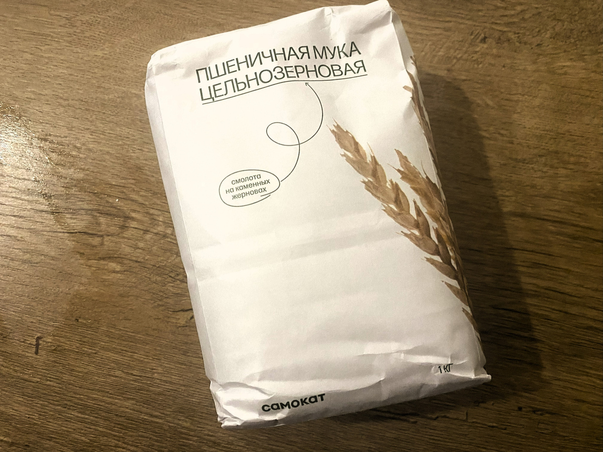 Но цельнозерновая мука у меня в деревне, а мы в городе, поздний вечер.