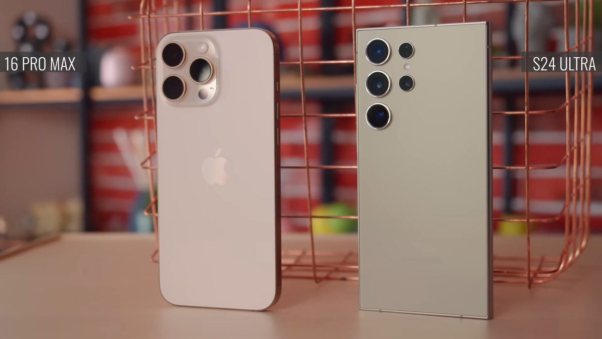 В одном из выпусков на YouTube-канале GSMArena Official рассказали, чем похожи и чем отличаются друг от друга «максимальные» флагманы от Samsung и Apple: Galaxy S24 Ultra и iPhone 16 Pro Max. iPhone 16 Pro Max и Samsung Galaxy S24 Ultra имеют титановые рамки, при этом задние панели у них сделаны из стекла. Оба устройства имеют защиту IP68, но водонепроницаемость лучше у iPhone: он выдерживает погружение в воду до 6 м на 30 минут, а Samsung — до 1,5 м. У iPhone 16 PM экран имеет диагональ 6,9 дюйма. Стекло у него стало более устойчивым к повреждениям, а рамки — тоньше. Galaxy S24 Ultra поставляется с экраном на 6,8 дюйма. Лучшее качество изображения даёт Samsung, но разница невооружённым глазом мало заметна. Также дисплей Samsung более матовый и меньше «бликует» на солнце, вырез для селфи-камеры у него тоже меньше, чем у iPhone. Разблокировка на iPhone 16 Pro Max происходит по лицу (Face ID). На Samsung Galaxy S24 Ultra вы тоже можете использовать разблокировку по лицу, но безопаснее бу