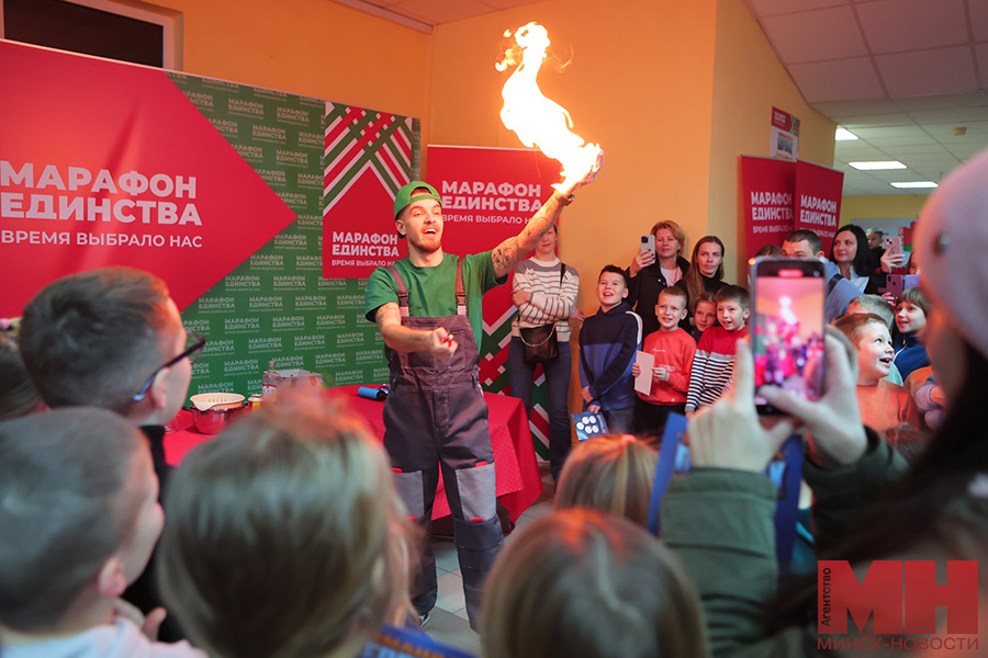 Больше тысячи ребят поучаствовали в квесте «Команда первых» в Оршанском городском центре культуры «Победа» 7 декабря, передает корреспондент агентства «Минск-Новости». Орша стала первым городом «Марафона единства», где состоялся такой грандиозный детский праздник. «Команда первых» — современный белорусский бренд для детей, история которого началась на Главной елке страны в декабре 2023 г. Ключевые герои — девочка-изобретатель Мира, роботы-трансформеры Базис, Мастер и Пилот. В Орше «Команда первых» представила фотозону и квест для детей 5–11 лет с веселыми заданиями, призами и сладкими подарками. Каждый игрок получал карту со станциями квеста. Среди заданий — эстафета «Вездеход», которую нужно пробежать в гигантских ботинках. Конкурс «Механизм», где участникам предлагалось собрать небольшой механизм, который приводится в действие батарейками. Задача на память и внимание «Найди пару техники». В «Машинной лаборатории» ребята принимали участие в настоящих экспериментах. Например, удержать