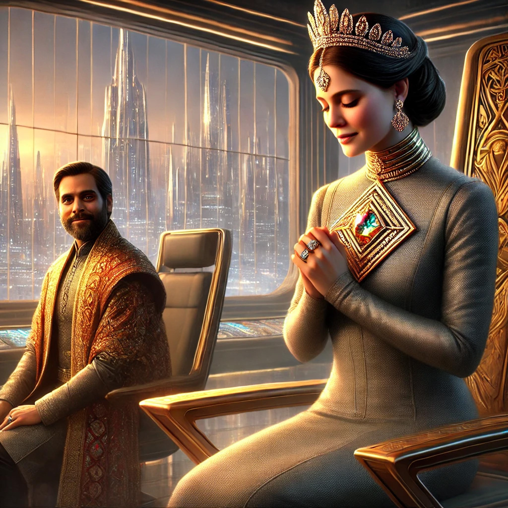 Продолжаю иллюстрированный рассказ о моём романе «Тёмное Пламя». Я решил больше не использовать в качестве титульного изображения обложку романа, а буду использовать одну из иллюстраций. На титульном изображении сегодня иллюстрация «Эдна Корн и Рам Мара после заседания Высшего Совета АГР». Надеюсь, так будет интереснее, иллюстрации, в основной массе, мне нравятся.