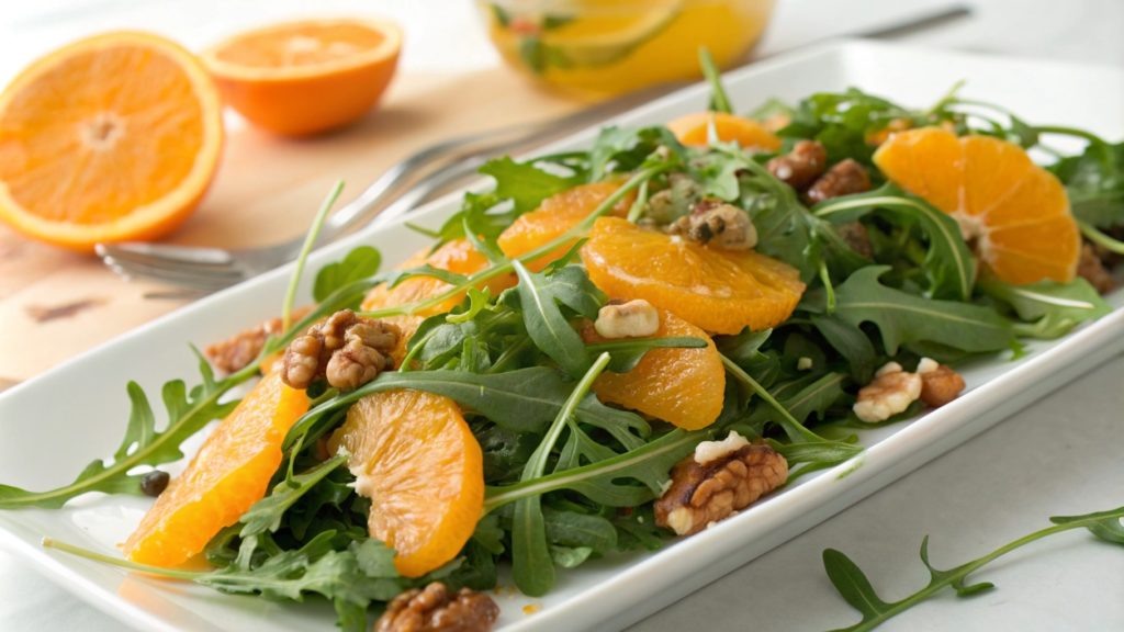 Салат из рукколы с апельсинами и орехами — это освежающее и яркое блюдо, которое удивит вас своим вкусом и изяществом. Сочетание нежной рукколы с сладкими апельсинами и хрустящими орехами создает гармоничную композицию, которая отлично впишется как в повседневное меню, так и в торжественный стол. Этот салат не только вкусен, но и богат витаминами и антиоксидантами.