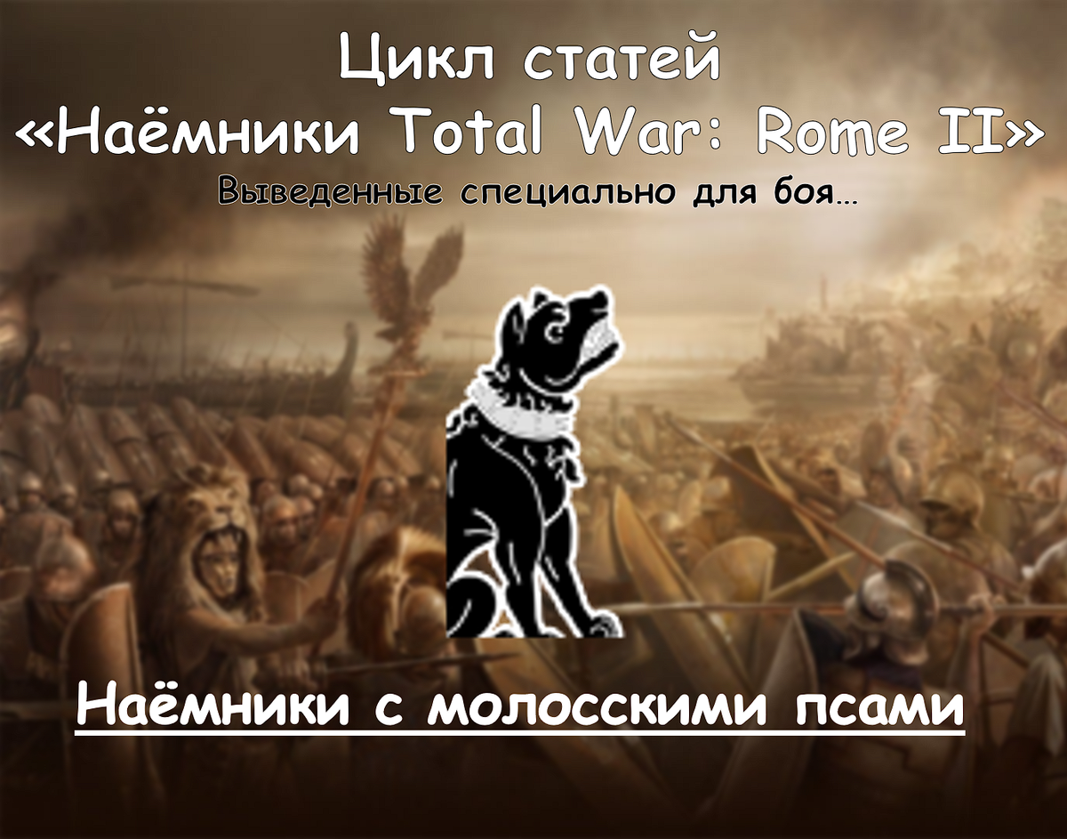 «Наёмники с молосскими псами» - лёгкий особый юнит, нанимаемый в Иллирии и Македонии. Максимальное количество «наёмников с молосскими псами», доступных для найма в регионе - 3 отряда. Скорость появления юнита составляет 1 отряд - каждые 6 ходов. То есть, если вы наймете их, то через 6 ходов появится еще один. Регулярная версия этого отряда имеется у Эпира (юнит добавлен в DLC Beasts of War). Наёмная и регулярная версия идентичны. Собак всегда использовали для охраны и разведки. А хорошо обученный пес мог принести большую пользу на поле битвы. Боевых псов специально выращивали и обучали не пугаться шума и хаоса сражения. Их учили нападать по команде, а перед боем некоторое время не кормили и выпускали на врага целой сворой, чтобы расстроить боевые порядки противника. Стая разъяренных собак запросто могла заставить врагов дрогнуть и нарушить строй, а уже затем в бреши в рядах противника врубалась пехота. «Наёмники с молосскими псами», очень сомнительный юнит, да, в сравнении с остальными