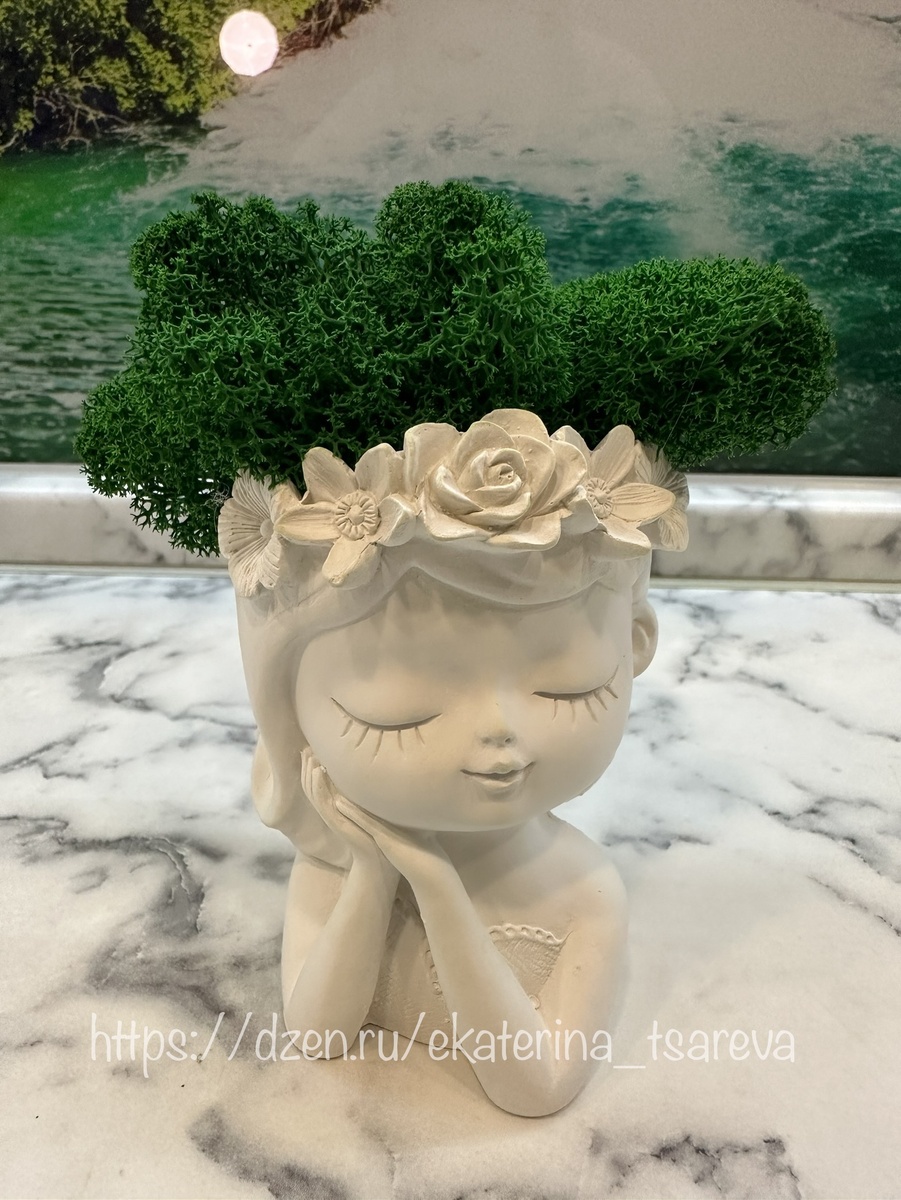 Гипсовая статуэтка со стабилизированным мхом. Декор дома.