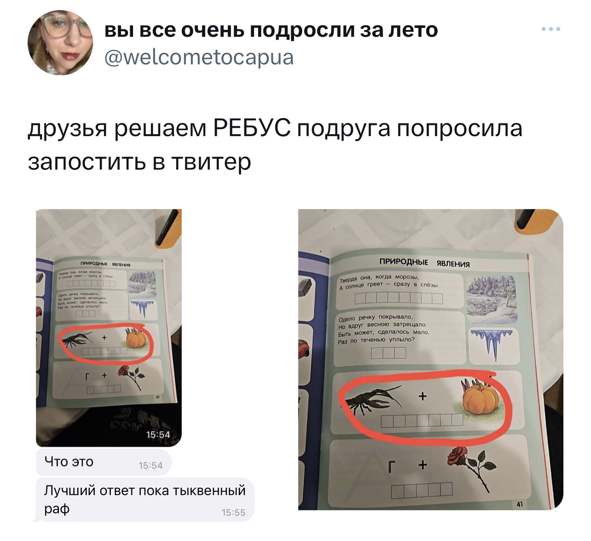 Всё началось почти ровно год назад – 12 декабря 2023 года. Невинный ребус для дошкольников неожиданно взорвал социальную сеть Х (бывший «Твиттер»).