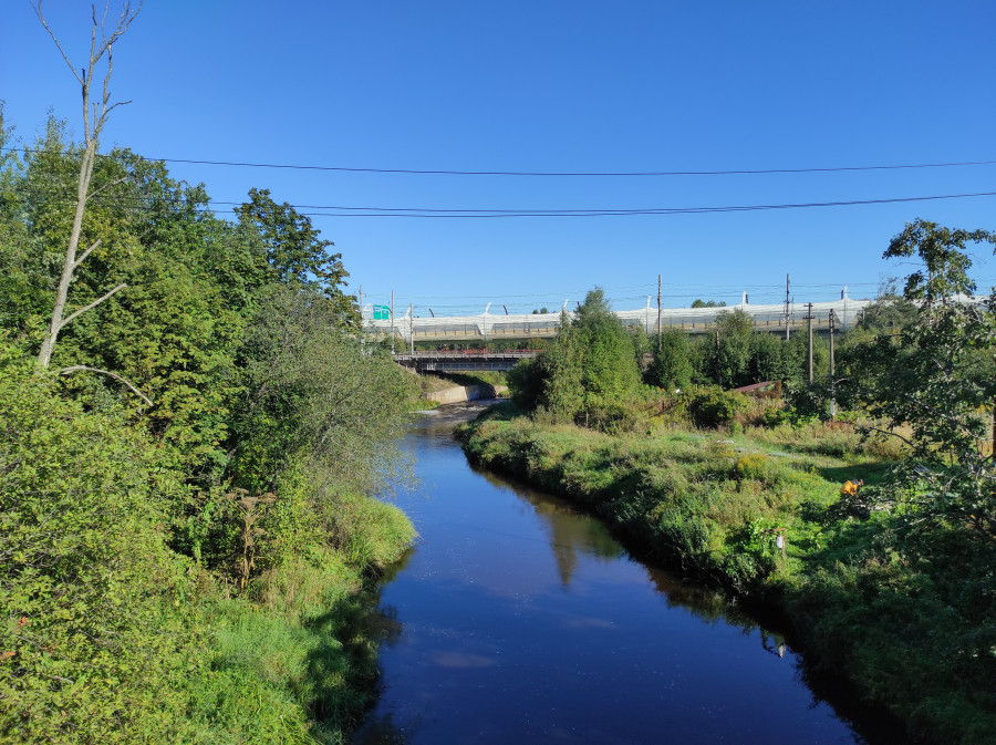 Речка Сестра, по которой проходила граница. Справа был советский берег, слева - финский. На заднем плане виден Западный скоростной диаметр - скоростная дорога, позволяющая быстро проехать Петербург с севера на юг вдоль Финского залива. Дорога очень хорошая и живописная, но имеет один большой недостаток. Она платная и весьма недешевая: Город Зеленогорск (финское название Терийоки). Здесь сохранился межвоенный финский вокзал: Напротив - милый фонтанчик с дельфинами. Места здесь курортные, хотя де
