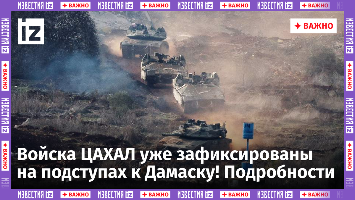 Израильские танки выдвинулись дальше буферной зоны вдоль границы с Сирией и достигли окрестностей Дамаска. Об этом сообщил ливанский телеканал Al Mayadeen. По его данным, танки Армии обороны Израиля (ЦАХАЛ) были замечены в районе населенного пункта Катана, который находится на юге Сирии приблизительно в 20 км от столицы. Уточняется, что в указанной области израильские военные заняли ряд сельских населенных пунктов. Накануне сообщалось, что израильская армия нанесла удары по крупнейшим авиабазам Сирии. Министр иностранных дел арабской республики Бассам Саббаг сообщил, что Дамаск уведомит Совет Безопасности ООН о нарушении Израилем суверенитета страны. Иран призвал СБ отреагировать на военное вторжение, которое МИД Израиля назвал временным. Ранее, 8 декабря, президент Сирии Башар Асад после переговоров с оппозицией покинул пост главы государства и уехал из страны, дав указание осуществить передачу власти мирным путем. Затем коалиция революционных и оппозиционных сил Сирии заявила о работ