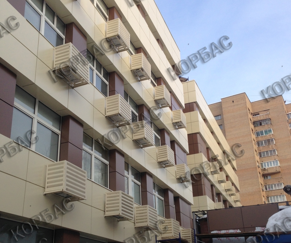 К тому же, наружные блоки кондиционеров на фасадах любых зданий, современных и старинных, смотрятся очень не эстетично и чуждо. Чтобы вы не получили предписание о демонтаже кондиционера, необходимо скрыть блок за специальным ограждением, гармонирующим с фасадом вашего дома. Лучше всего, если все установленные наружные части сплит систем будут скрыты за одинаковыми ограждениями, не нарушающими эстетичного вида дома или здания. Компания «ЭСКОН» предлагает вам купить защиту — ограждение внешнего блока кондиционера, корзину КОРБАС®. Наша продукция одновременно выполняет несколько функций: Множество вариантов изготовления: различная перфорация, выбор любого цвета, размера и вида крепления