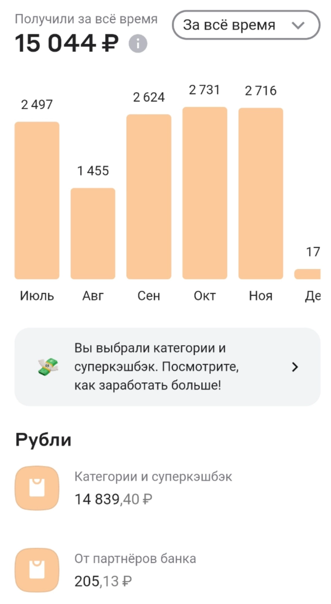 Я бы очень хотела рассказать вам о том , что же такое кэшбеки и почему на них можно отлично з@р@ботать💰💴💸 Для тех, кто еще думает, что кэшбек-фигня- посмотрите на цифры👇🏼👇🏼👇🏼 14000₽ не большие деньги, но согласитесь, что вы для их получения НИЧЕГО НЕ ДЕЛАЛИ!!! Каждый из нас каждый день что-то покупает и почти каждый из нас ищет какие-то промокоды и скидки , чтобы совершить покупку еще выгоднее. Согласитесь? Очень важный момент, что именно этот самый кэшбек уже заложен в цену товара, а когда вы платите не картой, а , наличкой/qr/спб/переводом, то просто дарите свои деньги🤯 Почему же так происходит? Все элементарно: в цену товара в магазине уже заложен тот самый эквайринг. А какая же выгода банку? Самая простая, ведь когда вы платите картой, он получает комиссию и именно той самой комиссией он Готов поделиться 💰💴💸 Если же вы еще не получаете такой классный кэшбек, то скорее всего исправляйтесь🤞, ведь уже наступил тот самый затратный месяц года😄 А если нужна консультация