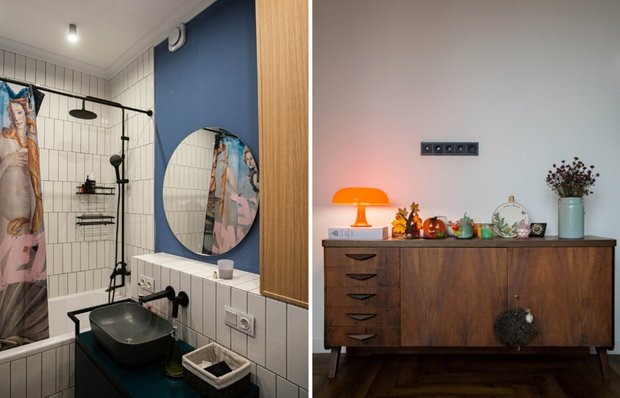 Вдохновением для интерьера стали стиль mid-century, искусство и винтаж. У нас с дизайнером Аней Загузовой совпало видение: мы сразу поняли, что хотим сделать пространство с характером.