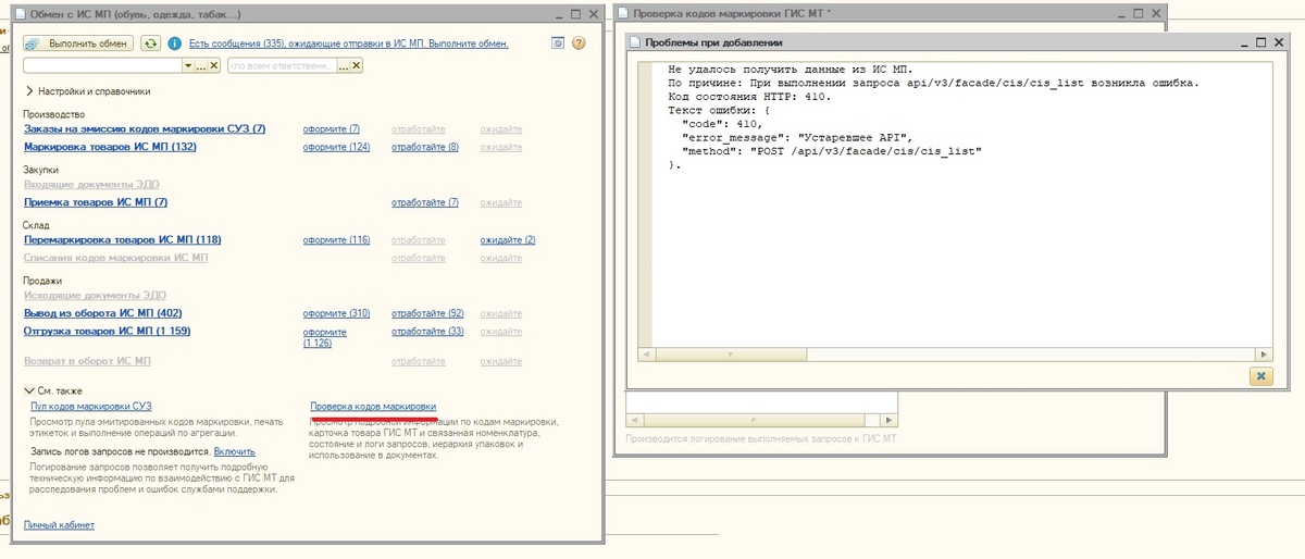 В рамках проводимых технических работ на промышленном контуре https://markirovka.crpt.ru метод POST /api/v4/facade/cis/cis_list был отключен. Теперь альтернативой методу является метод TRUE API. В данной статье описан краткий метод доработки конфигурации УТ 10.3. Может кто-нибудь из молодых программистов 1с подчеркнёт для себя что-то нужное. Так вот. Негодованию пользователей УТ 10.3 нет предела, поскольку при выполнении запроса api/v3/facade/cis/cis_list возникает ошибка: