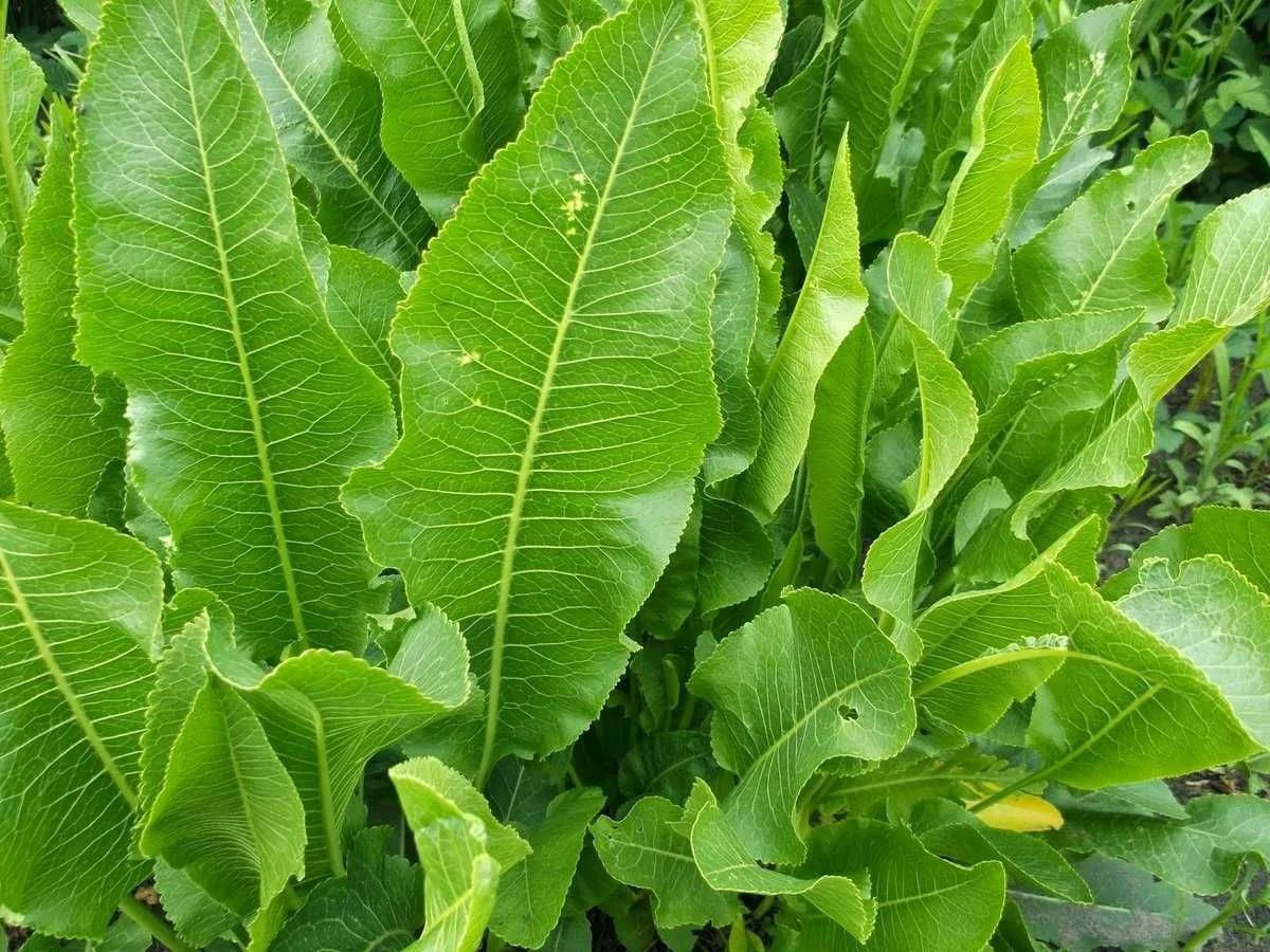 Борьба с болезнями растений: Листья хрена выделяют фитонциды, которые подавляют рост патогенных микроорганизмов, помогая в борьбе с такими болезнями, как фитофтора, фузариоз и кладоспориоз. Для приготовления настоя измельчают свежие листья хрена, заливают их водой и настаивают несколько дней. Полученным средством опрыскивают растения. ▫️Борьба с вредителями: Хрен эффективен против тли, особенно на начальном этапе поражения. Для приготовления средства измельчают листья хрена, заливают их теплой водой и настаивают несколько дней. Полученный концентрат разводят водой и опрыскивают растения. ▫️Мульчирование: Листья хрена могут использоваться в качестве мульчи, защищая почву от испарения влаги и отпугивая вредителей своим запахом. Для этого листья раскладывают под растениями.