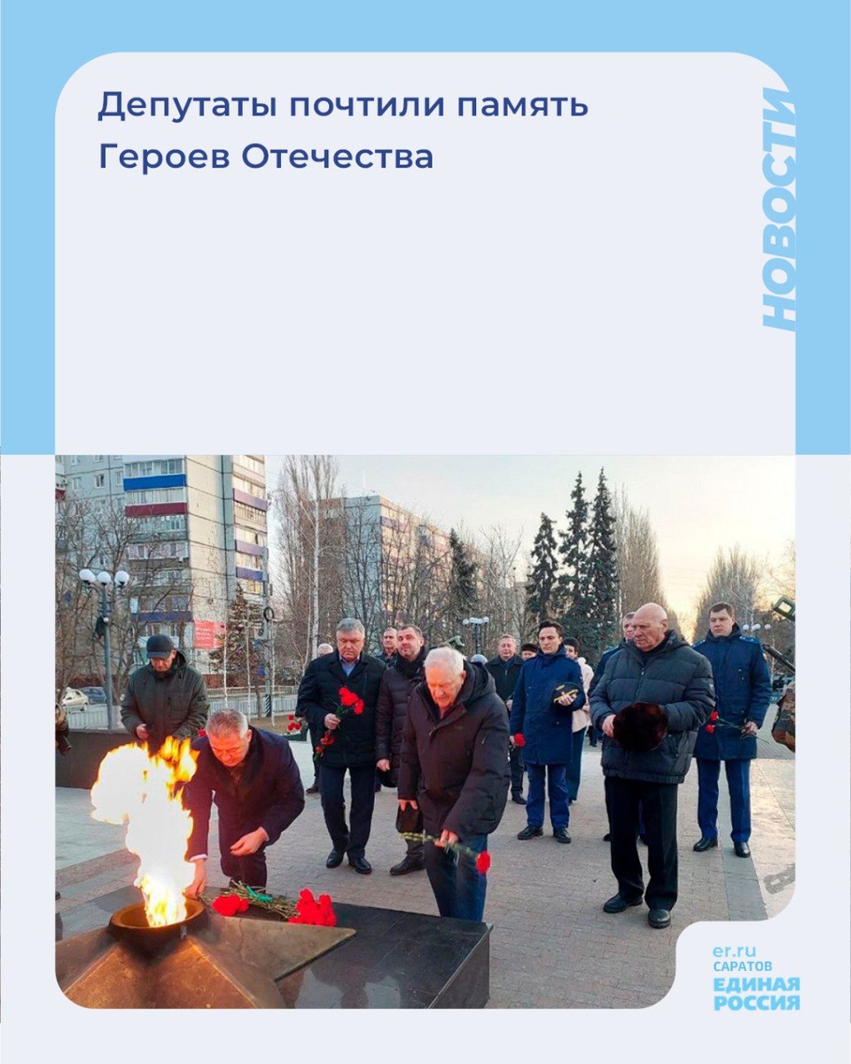 🕯️Сегодня депутаты Саратовской областной Думы Кирилл Лаврентьев и Владимир Земсков возложили цветы к Обелиску памяти балаковцам, погибшим в годы Великой Отечественной войны. В церемонии возложения цветов, посвященной Дню Героев Отечества, также приняли участие представители Балаковского отделения общественной организации ветеранов «Боевое братство», районной администрации, правоохранительных структур. 💬«В этот день мы отдаем дань уважения смелым, мужественным людям, совершившим выдающиеся поступки во имя Родины, ради спасения ближних, ради мира, процветания, благополучия на нашей земле. Мы гордимся подвигами всех Героев нашего Отечества, которые защищали и защищают гражданский мир, свободу и независимость Родины», - отметил Кирилл Лаврентьев.