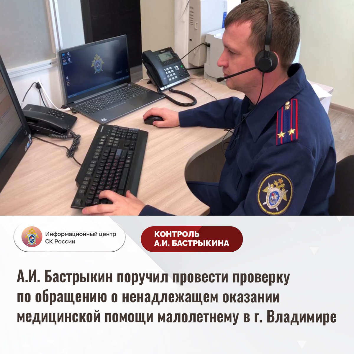 А.И. Бастрыкин поручил провести проверку по обращению о ненадлежащем оказании медицинской помощи малолетнему в г. Владимире На единую многоканальную телефонную линию Информационного центра СК России обратился участник СВО. В декабре текущего года его трехмесячного сына госпитализировали в одно из медицинских учреждений в городе Владимире. Заявитель отмечает, что квалифицированное лечение младенец не получает, он находится в тяжелом состоянии. Многочисленные просьбы родителей направить ребенка в профильную больницу результатов не принесли. Председатель Следственного комитета Российской Федерации Александр Иванович Бастрыкин поручил и.о. руководителя СУ СК России по Владимирской области Андрею Александровичу Ялину провести процессуальную проверку, доложить о ее предварительных и окончательных результатах, а также принять исчерпывающие меры к обеспечению квалифицированной медицинской помощи малолетнему. Исполнение поручения, а также ход процессуальной проверки поставлены на контроль в