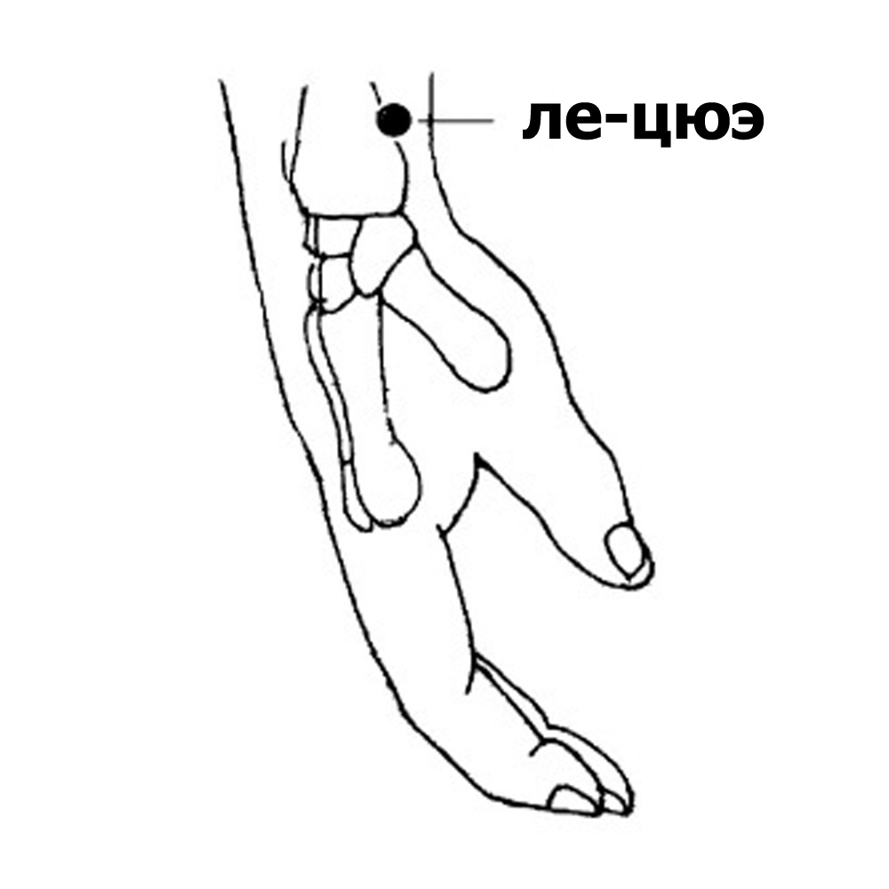 Основная функция точки ле-цюэ – поставить барьер для заболеваний легких, на уровне носоглотки и кожного покрова. Именно поэтому точка используется на начальной стадии простудных болезней, содействует выделению пота при лихорадочных состояниях, устранению жара и головной боли.