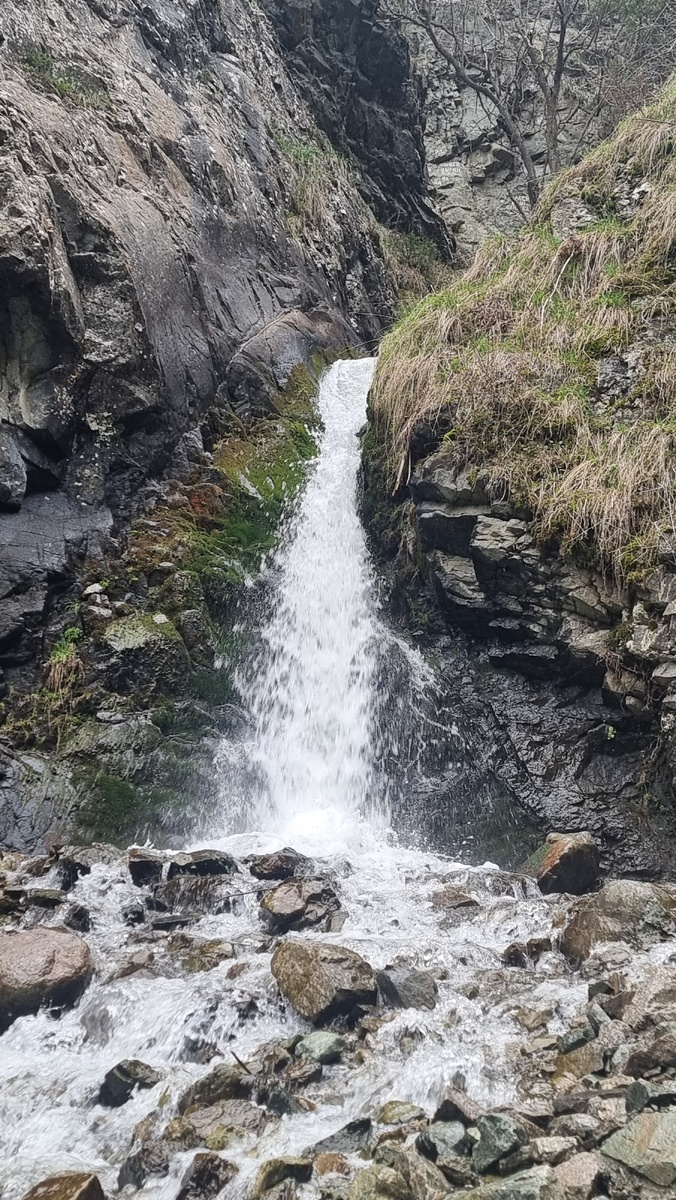 Месторасположение: Алматинская область, Казахстан Расстояние от Алматы: около 22 км Время в пути от Алматы: около 50 минут Дорога: из Алматы до водопада Аюсай ведет хорошая асфальтированная дорога. В месте, где дорога проходит через противоселевую дамбу, есть серпантин. Парковка на въезде к водопаду была переполнена, машины стояли вдоль дороги, были также и туристические автобусы, а поэтому людей также было много. Но, в основном, они все задерживались на входе, где расположен визит-центр, кафе. Водопад Аюсай находится на территории Иле-Алатауского национального парка, въезд в который платный (500 тенге с человека). Маршрут до водопада легкий и короткий. Протяженность его всего 670 метров. Набор высоты около 100 метров. На части пути тропы обустроены настилом. Координаты старта: 43.10175, 76.94391. Поднявшись по склону, оказываешься на тропе, идущей вдоль склона с видом на нижнюю тропу и шумящую реку. Не успеваешь оглянуться, как тропа приводит к оборудованной площадке у подножия перво