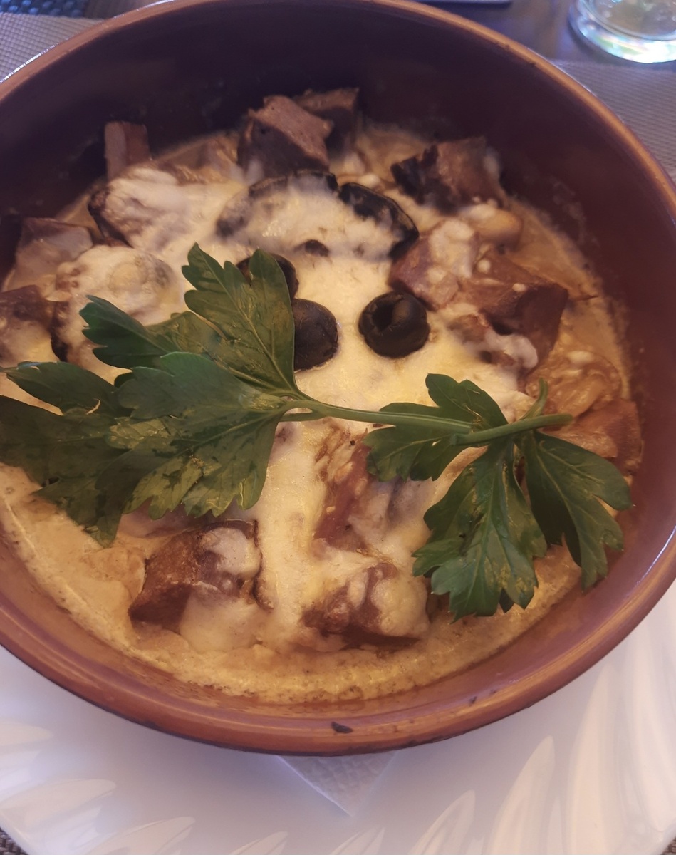 Очень вкусное и необычное горячее Ингредиенты для 6 порций: Язык - 700 грамм Грибы - 300 грамм Сыр твердый - 300 грамм Майонез - 60 миллилитров Лук - 2 штуки Растительное масло - 4 ст. ложки Соль - по вкусу Перец черный молотый - по вкусу Зелень для украшения Все очень просто и быстро. Язык варю в мультиварке. Охлаждаем, чистим, нарезаем крупными кубиками. Жарим лук и грибы. Смешиваем. Добавляем майонез. Раскладываем по глиняныс горшочках или тарелочкам ( эта глиняная тарелочка из Фикс прайса). Добавляем много сыра. 15 мин запекаем. Все) Очень быстро и просто. Всем приятного аппетита)
