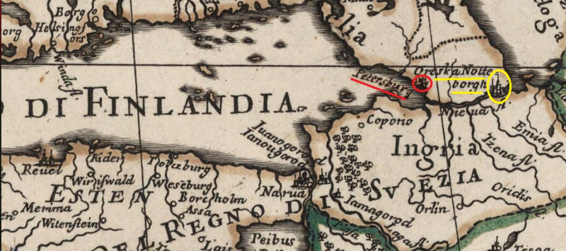 Недавно я рассказывал об интересной карте из атласа Джовани Джакомо де Росси (1627-1691), опубликованного в 1689 году в Риме. Это карта «Ла Скандинавия», на которой изображены территории Скандинавии, Прибалтики и северо-западной части России. Но самое интересное, что на ней уже отмечен город Петерсбург, т.е. почти за полтора десятка лет до его официального основания человеком, известным из учебников истории как «император Петр I».