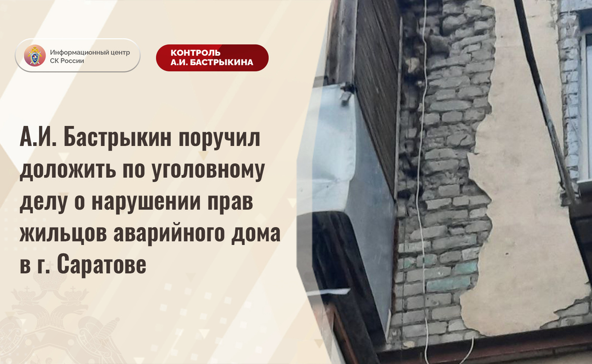 А.И. Бастрыкин поручил доложить по уголовному делу о нарушении прав жильцов аварийного дома в г. Саратове