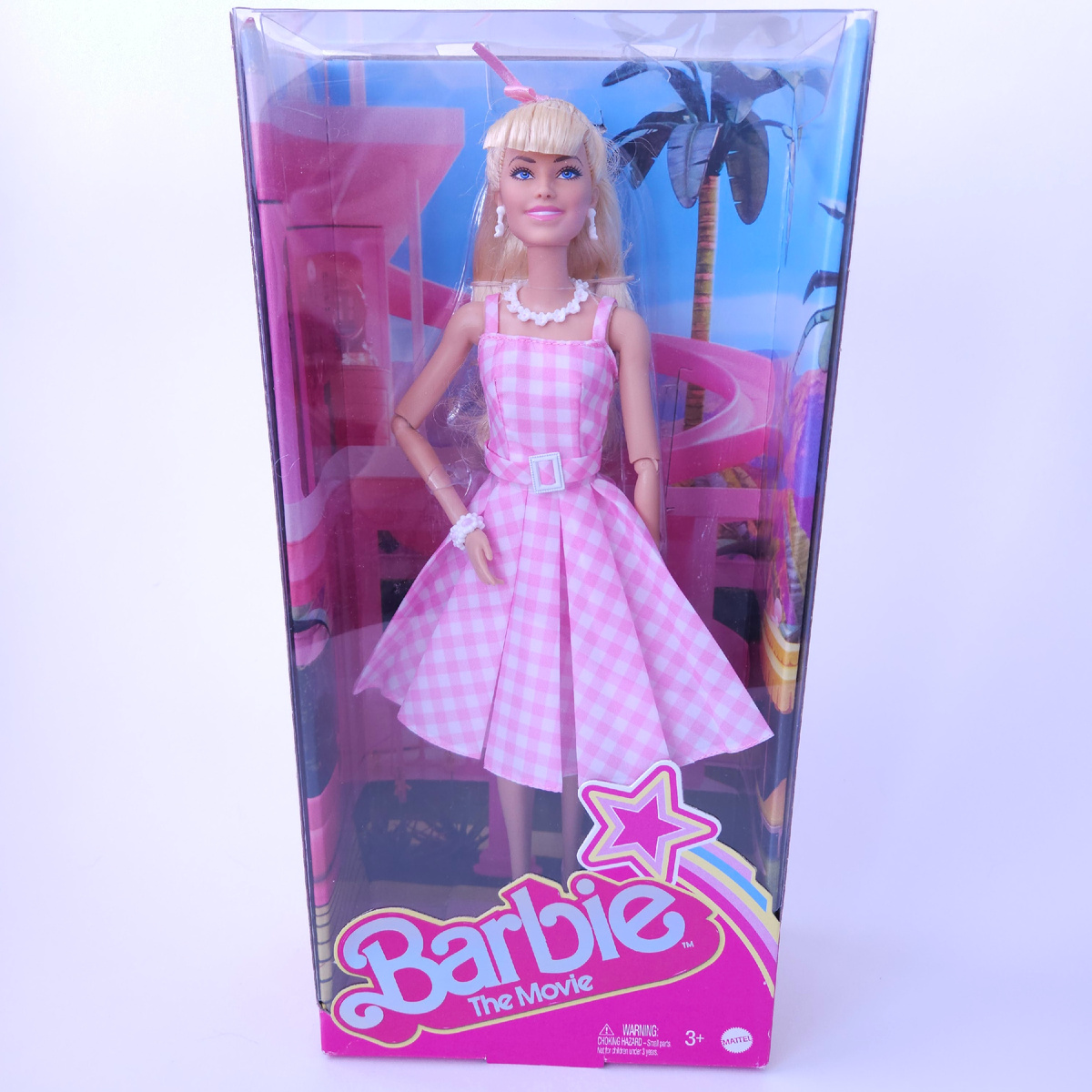 Эти куклы - байт для коллекционеров барби. Ну как можно не купить куклу по фильму про Барби. Сам фильм достаточно взрослый, хоть и про кукол, так что не удивительно, что почти все сопутсвующие выпуски Барби и Кена скорее для коллекционеров, чем для детей. Я тоже не могла пройти мимо такого события и взяла себе одну Барби. Мне больше нравится Барби в зеленом платье и шляпке, но моя версия на 20$ дешевле, что и определило мой выбор. До конца не была уверена, что молд Марго Робби мне понравится, а платить за более дорогой выпуск, где именно лицо мне может не понравится... Я в итоге решила не рисковать. Благо, мне досталась вполне ровная печать. Главное, из-за чего я не хотела брать именно этот выпуск - челка. На мой вкус, она максимально странно завита, далеко отстоит от головы. С ней я мучалась больше всего: подстригала и переукладывала в надежде, что оно станет выглядеть лучше. По итогу получилось все еще не идеально, но уже не так странно, как было. Но это была не единственная про