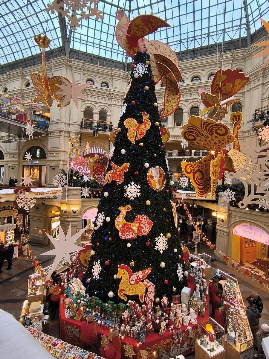 Несколько дней мы с вами рассматривали выставку новогодних ёлочек в ГУМе. Но нельзя не рассказать о том, как красиво украшен магазин к Новому году. Акцент в украшении ГУМа этого года -- хохлома. Ёлочный базар как всегда притягивает... Фабрика "Ариэль" как всегда создаёт прекрасные новогодние украшения... В этом году на ёлочном базаре довольно много представлено игрушек-прищепок. А вот и ёлочные украшения из ваты производства Коломны. Я всегда провожу здесь много времени. Наслаждаюсь. Как всегда огромный выбор польских коллекционных ёлочных украшений. Цены очень высокие. Вот они в наборах. Каждый год производитель выпускает ограниченную коллекцию наборов ёлочных украшений на две-три игрушки в наборе,иногда больше, но и цены невероятные. А вот и подарочные ёлочные украшения, которые можно подписать на память. Каждый такое покупаю внуку. Ну вот и весь обзор. Лучше конечно по возможности приехать в Москву и погулять здесь, насладиться этой атмосферой и запахами кофе, шоколада