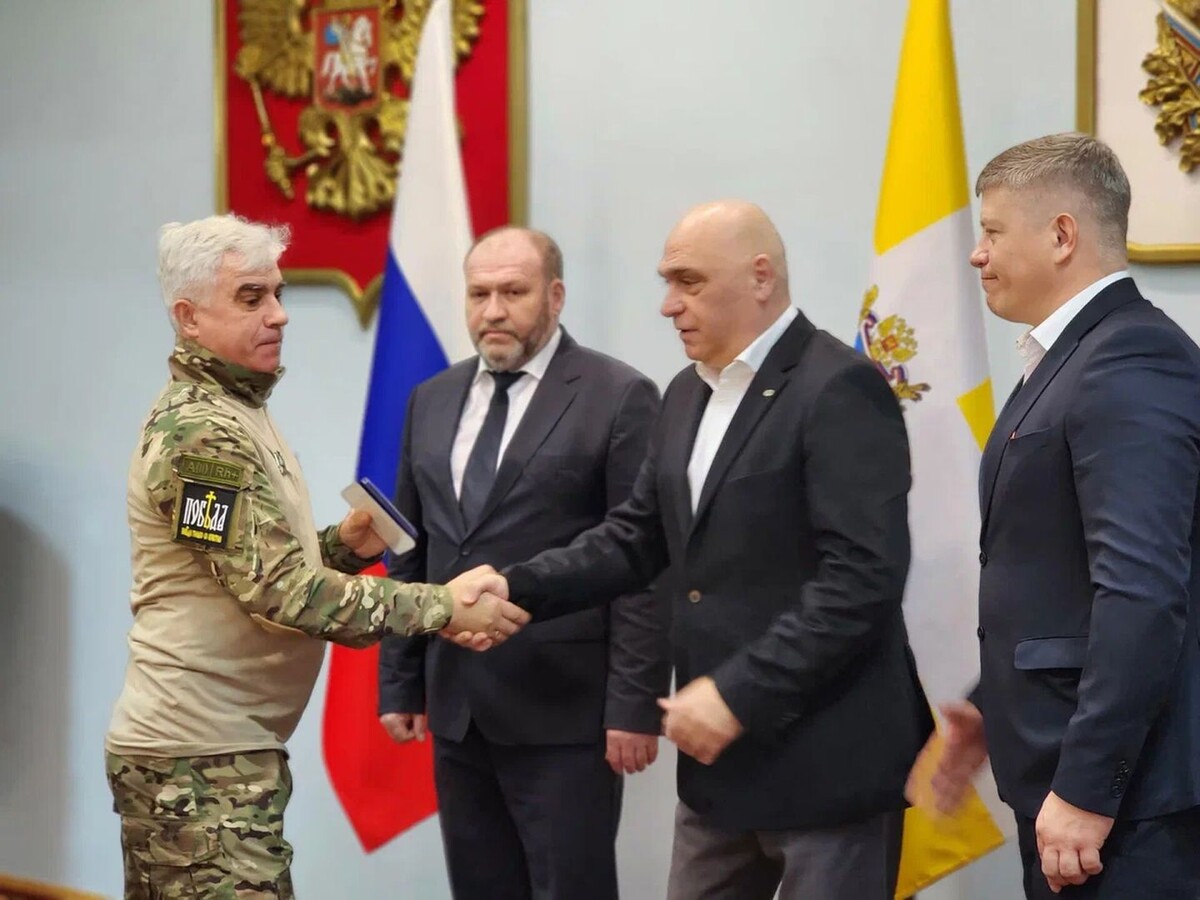 В Ставрополе на итоговом заседании краевой Общественной палаты состоялось торжественное вручение медалей общественного признания «Отец солдата». Церемонию награждения провел председатель Общественной палаты региона Георгий Нефетиди. «Благодарим за воспитание достойных сыновей!», — подчеркнул он, отметив вклад отцов в поддержку военнослужащих, помощь в тылу и непосредственное участие многих из них в боевых действиях. В мероприятии участвовали руководитель Совета отцов Ставропольского края Александр Резюк и заместитель председателя движения «Отцы России» Артем Самойленко. Полковник Сергей Мерзеликин, терский казак, назвал полученную награду самой значимой в своей жизни, поскольку она подтверждает правильность воспитания сына. Его выступление участники церемонии слушали стоя. Медаль «Отец солдата» — награда Всероссийского общественного движения «Отцы России», которую вручают родителям военнослужащих, проявивших героизм при выполнении боевых задач в ходе специальной военной операции.