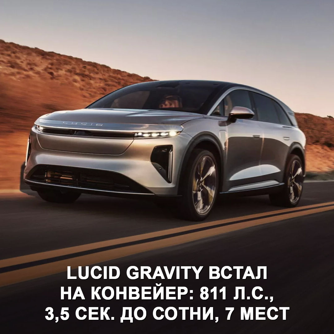 Стартап Lucid начал серийную сборку 5-метрового электрокроссовера Gravity. Более 800 л.с., 3,5 сек. до сотни, запас хода свыше 700 км 😎