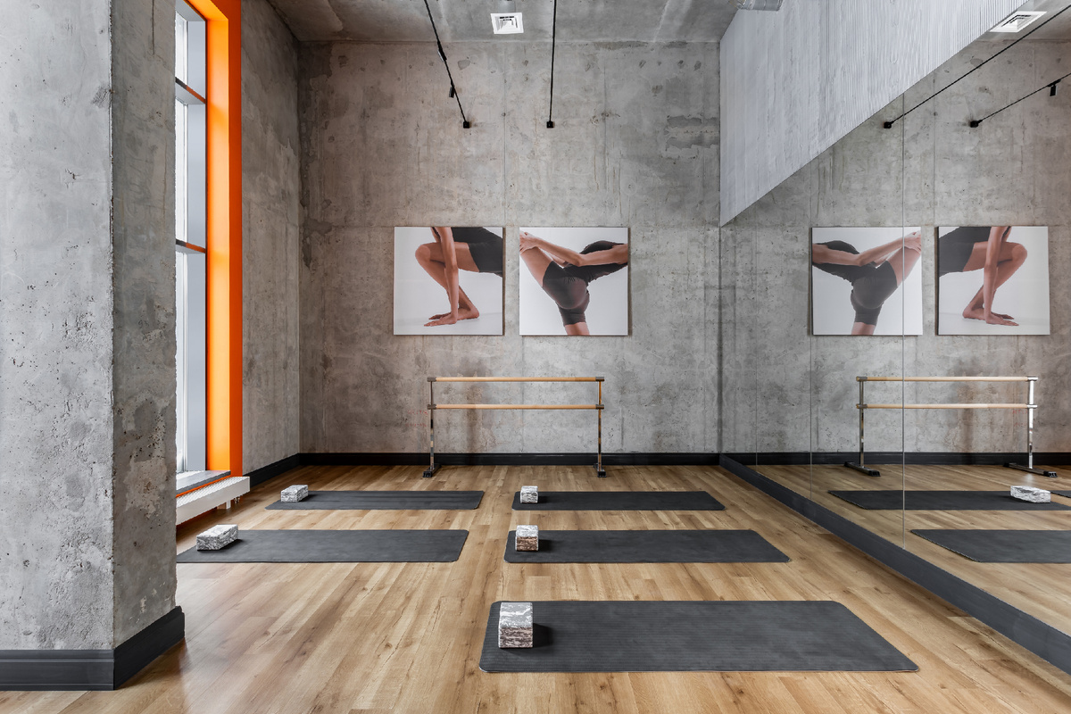 Kaderle — так на татарском языке обращаются к дорогому, самому ценному человеку. Так называет клиентку ее мама. Такое название она решила дать и своему бизнесу — студии пилатеса. Алиса Басова понимала, что в этой студии сосредоточено много личного, и поэтому создала пространство, в котором каждая деталь наполнена особым смыслом. Заказчица — молодая девушка с балетным прошлым — обрати- лась ко мне по рекомендации. Задача была создать фотогеничное пространство, не похожее на большинство студий. Сроки были сжатые, поэтому я предложила не тратить время на отделку стен и потолка. Основные стены остались в бетоне, а на возведенные нами из гипсокартона строители нанесли цементную штукатурку с добавлением рельефа. Так мы сэкономили приличную сумму, которую потратили на качественный свет и мебель. В центре помещения были расположены коммуникации и вентиляционная шахта, которые мы не могли перенести. Но мне удалось спланировать помещение так, чтобы у окон разместились два зала — групповых и инд