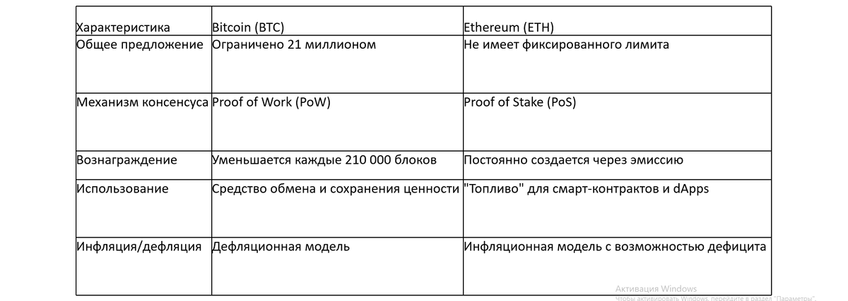 Токеномика Ethereum (ETH) и ее отличия от Bitcoin (BTC)