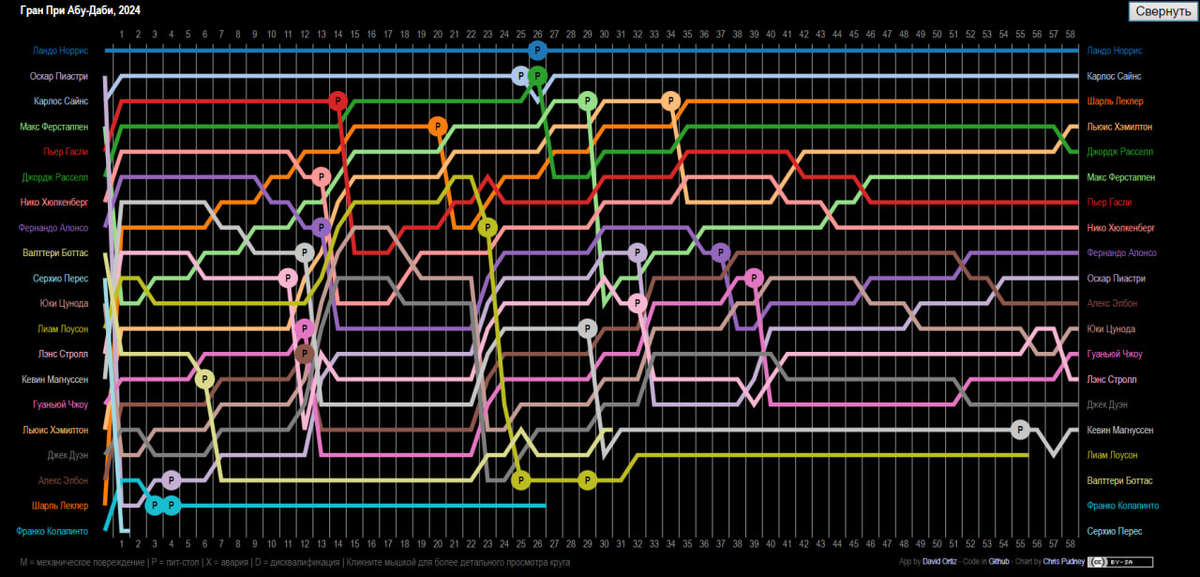 Что еще почитать про последний Гран-при сезона 2024 года? Звездный кайф на Гран-при Абу-Даби: пляски Соболенко с механиками, Синнер давал финиш… Ида Галич?! Будущие звезды «Ф-1» в финале молодежных гонок: борьба как у Хэмилтона и Ферстаппена, читерский скандал Вся «Ф-1» 2024-го: прорыв Ферстаппена без лучшего болида, 7 победителей Гран-при, поход «Макларена» за Кубком Титул «Макларена», прощание Хэмилтона, Ферстаппен станет отцом – эпохальная неделя «Ф-1» В «Ф-1» внезапный дебютант: сын легенды MotoGP. Ради его тестов выгнали бывшего лидера «Макларен» – лучшая команда «Формулы-1», 26 лет спустя! Вот весь путь со времен Хаккинена Что случилось на Гран-при Абу-Даби: Леклер взлетел на подиум с 19-го! Ферстаппен вынес «Макларен» на старте! Норрис вырвал для «Макларена» победу в чемпионате в упорной борьбе с «Феррари»