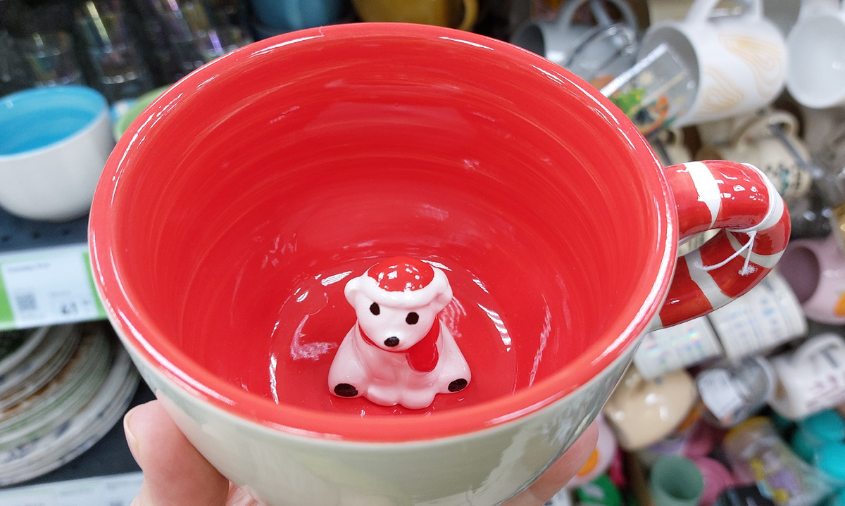 Прикольные кружки, яркие, объем 450 мл, с белым медведем, внутри сидит, есть со снеговиком и елкой, выполнены из керамики, понравились, здорово поднимают настроение. Цена 320 рублей. Три цвета.