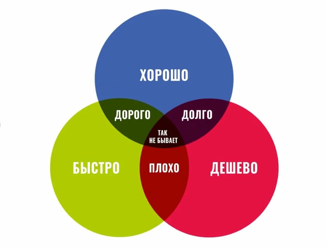 Универсальное правило: из триады "время — деньги — качество" на 100% можно выбрать только два. Вот как это работает на примере ниши дизайна интерьеров для бизнеса: 1. Быстро и качественно, но дорого. Сжатые сроки требуют дополнительных затрат: экспресс-доставка материалов, работа подрядчиков сверхурочно. 2. Качественно и недорого, но медленно. Экономия времени невозможна: придётся ждать, пока найдутся подходящие материалы и решения. 3. Быстро и недорого, но с потерей качества. Дешёвые материалы и стандартные решения не создадут долговечный и эффектный интерьер. Что выбрать бизнесу? Ресторану с жёстким дедлайном придётся потратиться, чтобы успеть вовремя. А кафе с ограниченным бюджетом может позволить себе подождать ради качества. Наша задача как профессионалов — помочь вам найти идеальный баланс, чтобы интерьер стал надёжным инструментом для вашего бизнеса. ✅ Получить бесплатную консультацию по дизайну интерьера в WhatsApp: https://bit.ly/3sFqXAl Наш телеграм-канал: https://t.me/bro